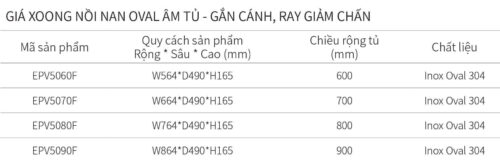 THÔNG SỐ LẮP ĐẶT GIÁ XOONG NỒI EUROGOLD EPV5080F